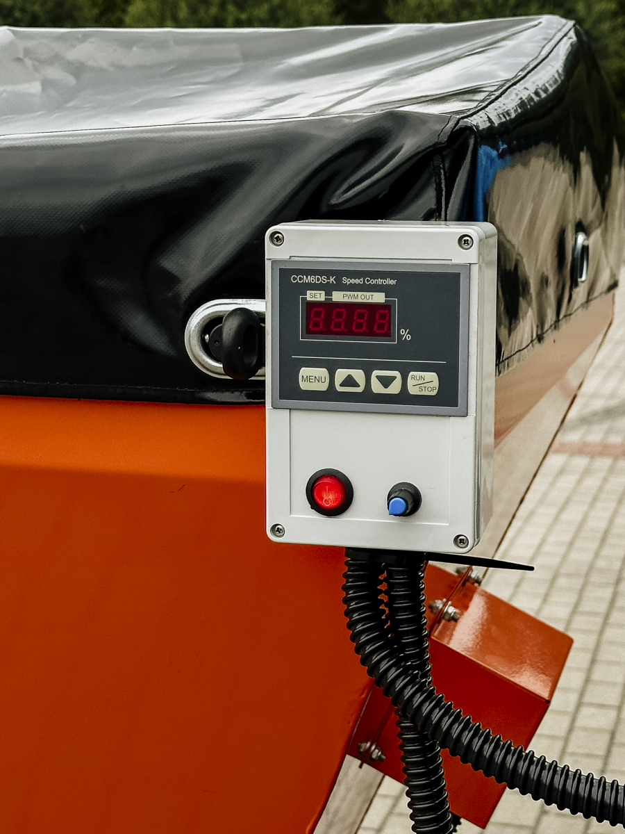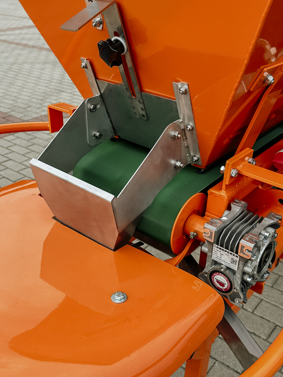 - tarcza rozrzucająca regulowana płynnie za pomocą silnika 12V,