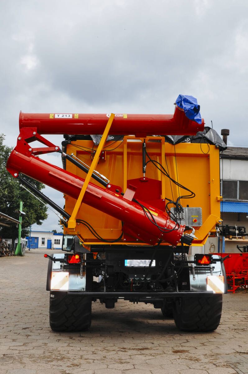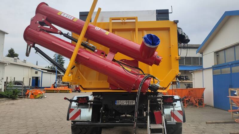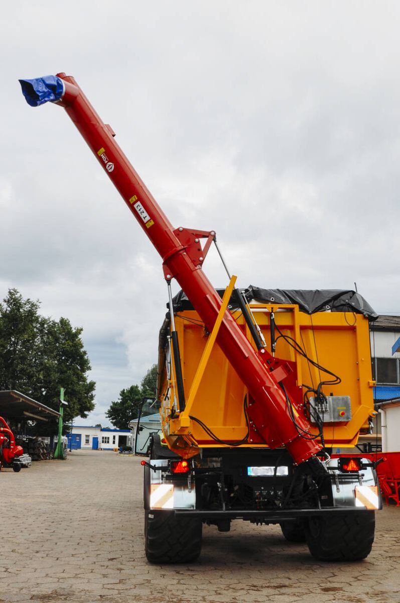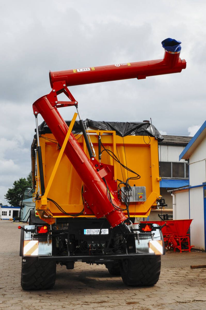 Przenośnik przeładowczy ślimakowy hydrauliczny T 213 przeznaczony jest do rozładunku lub przeładunku materiałów sypkich takich jak: ziarno zbóż, nawozy granulowane z przyczep skorupowych na inne środki transportu drogowego np. typu TIR.