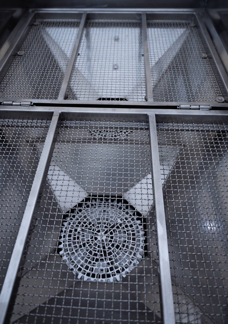 siatka filtrująca – specjalna siatka filtrująca zatrzymuje bryły nawozów. Dzięki umiejscowieniu siatki w dnie kosza zapewniony jest stały nacisk nawozu na elementy dozujące, bez względu na ilość nawozu znajdującego się w koszu.