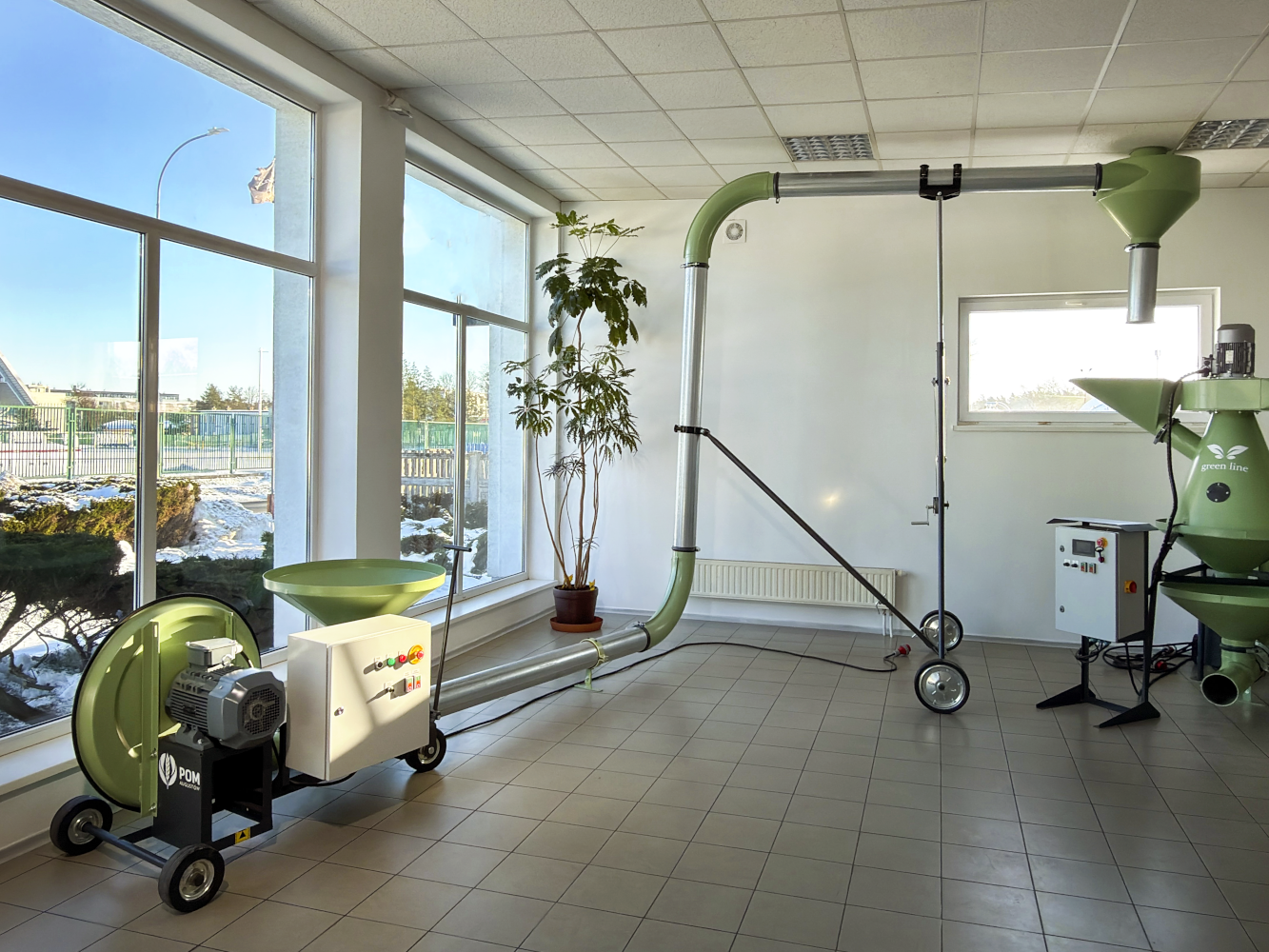Maszyny z serii Green Line zostały wyposażone w energooszczędne silniki przystosowane do pracy ciągłej w trybie S1 oraz spełniające wymagania klasy sprawności IE3, co w istotny sposób przekłada się na obniżenie kosztów eksploatacji. Na ich bazie można zbudować kompletny system transportu różnorodnych materiałów, takich jak granulat, płatki, tworzywa sztuczne, pellet, nasiona i inne surowce sypkie.